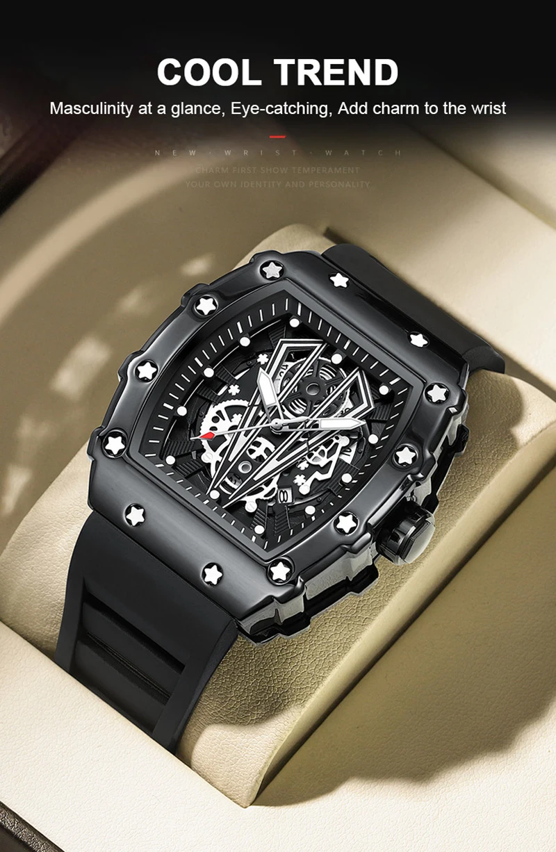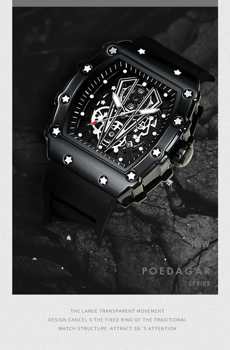Specifications High-concerned chemical None Display Type Numberless Case Thickness 15mm Band Width 20 to 24 mm Band Material Type Rubber Movement origin CN (Origin) POEDAGAR Unique Hollow Watches Mens Top Brand... Read more